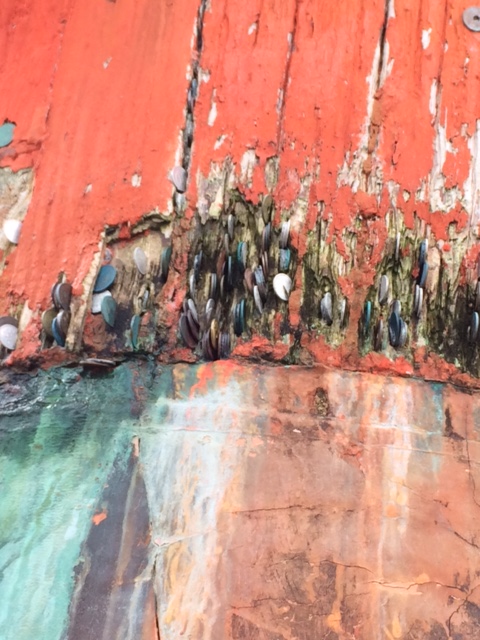 宮島の鳥居の柱にはコインがみっしり入っていました・・・