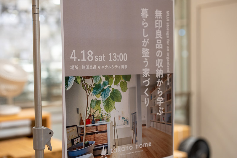 418日(土)に、無印良品 キャナルシティ博多にて「無印良品の収納から学ぶ 暮らしが整う家づくり」イベントを開催しました。