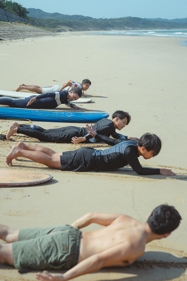 今夏に宮崎へサーフィン合宿に行っていた男性メンバーたち。気合いは十分です。
