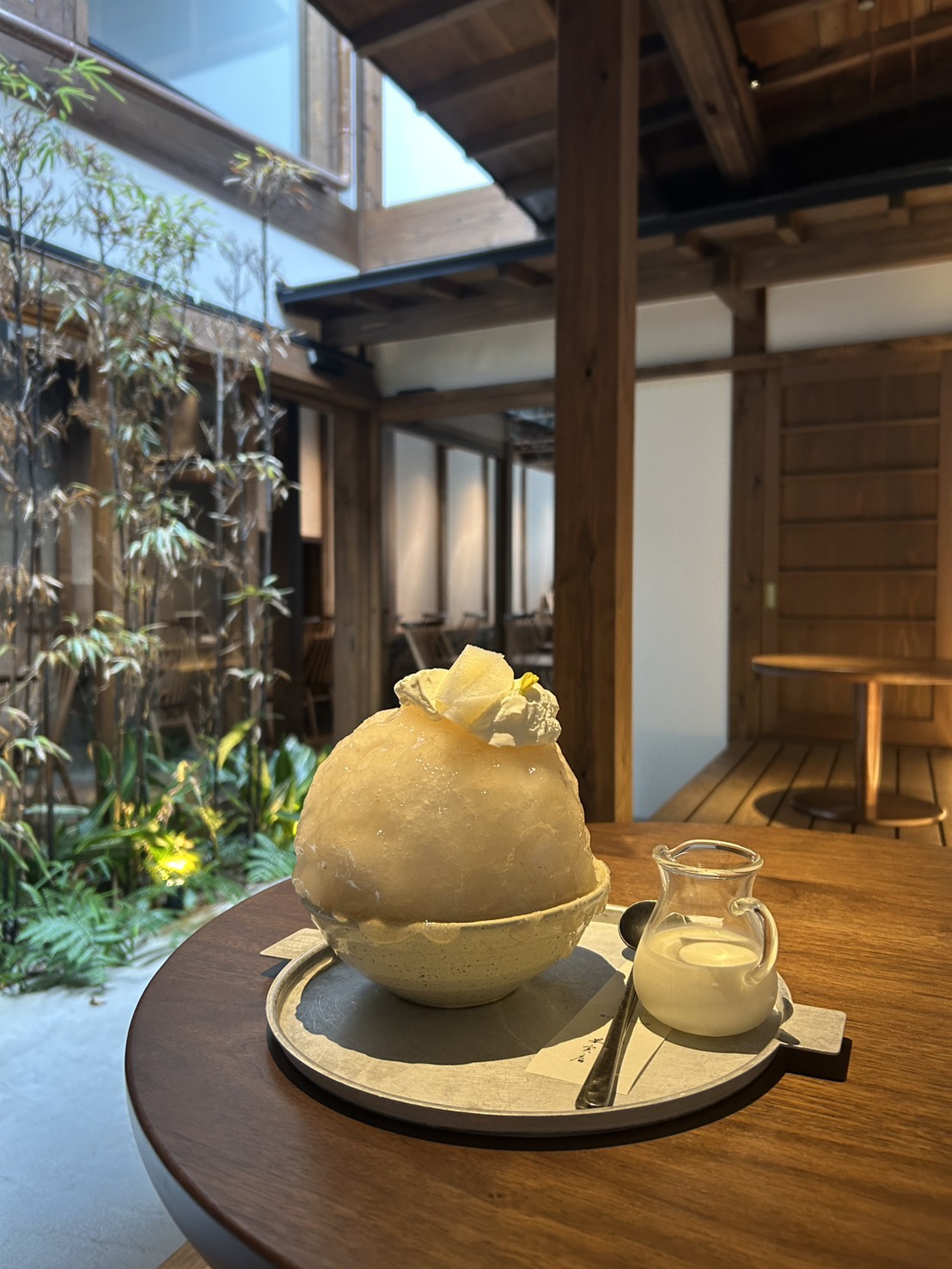 かき氷は梨の中でも甘いのが特徴の甘太にしました。