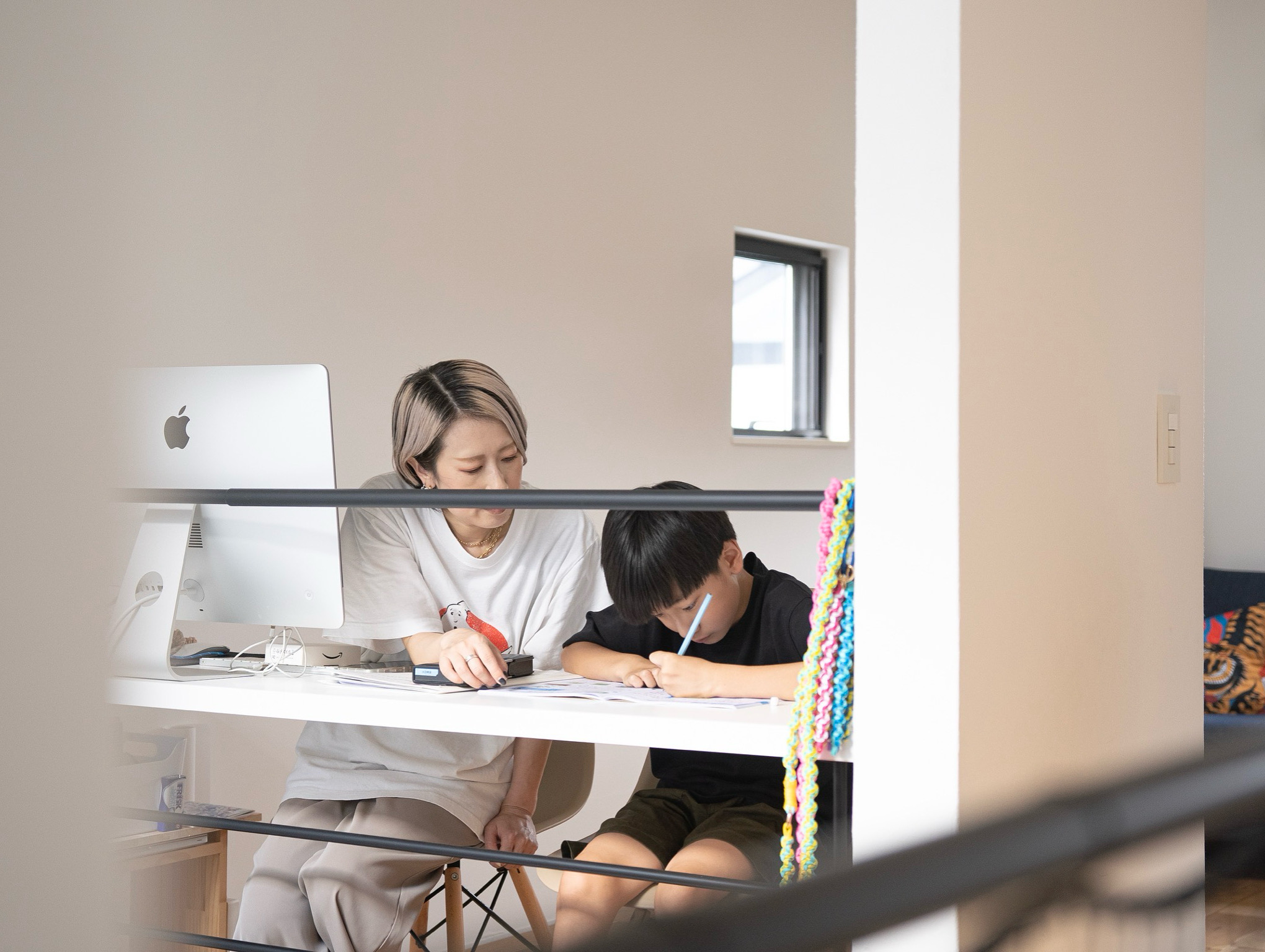 2人並んで作業ができるスペースで、親子の何気ない日常の瞬間を切り取られていると感じました。“こんな空間があったらいいな”と思わせてくれる素敵な1枚です。